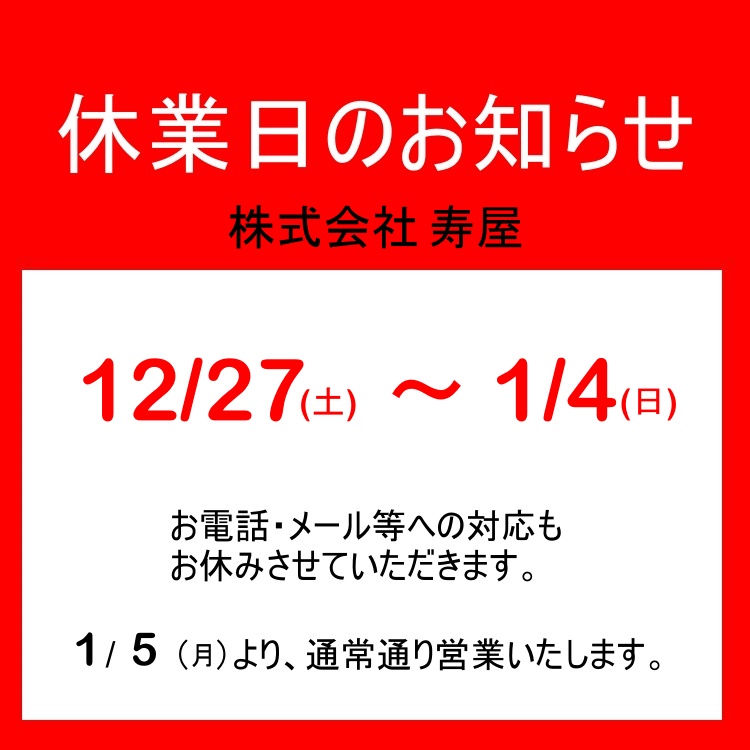年末年始休業日のお知らせ