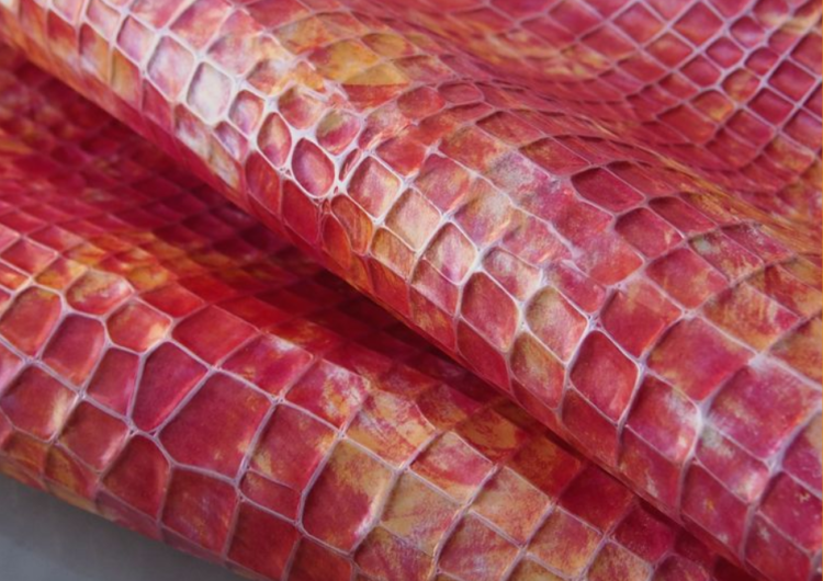 上の画像のように、左側から白い革が入り、右側へ黄色にプリントされます。